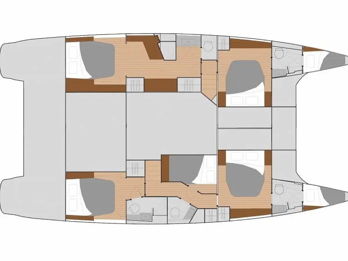 Meet Soleil Rae, our Fountaine Pajot Saba 50 (Owner's version). She is well-light, spacious, and comfortable. She offers 4 Double Cabins and 1 Super Single Cabin, each with its own electric head. Full air-conditioning with generator keeps everyone cool, and there’s a cockpit fridge plus an ice maker to keep the sundowners flowing.