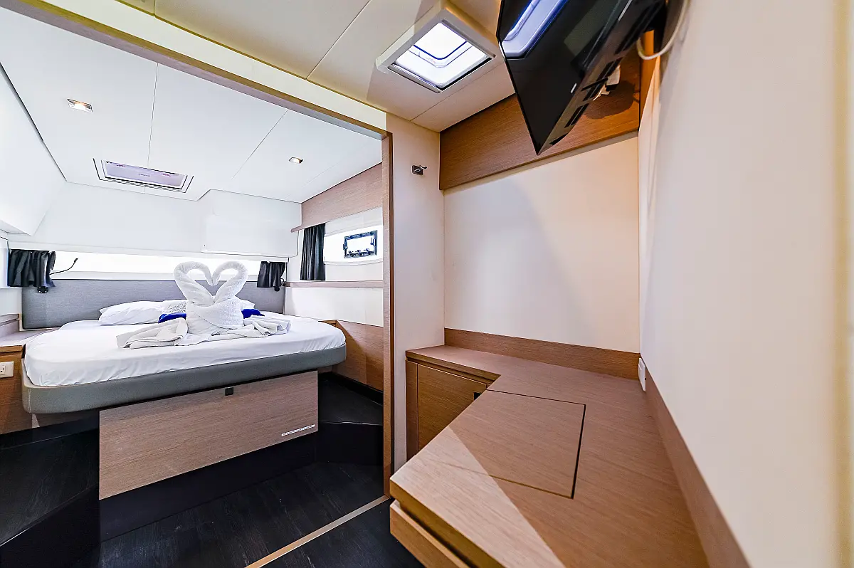 Life aboard Soleil Rae is all about comfort. She’s fully air-conditioned with generator, and her bright, airy spaces are loaded with smart storage. The 4 Double Cabins and 1 Super Single Cabin each feature private washrooms with electric heads, individual AC controls, and flexible lighting.