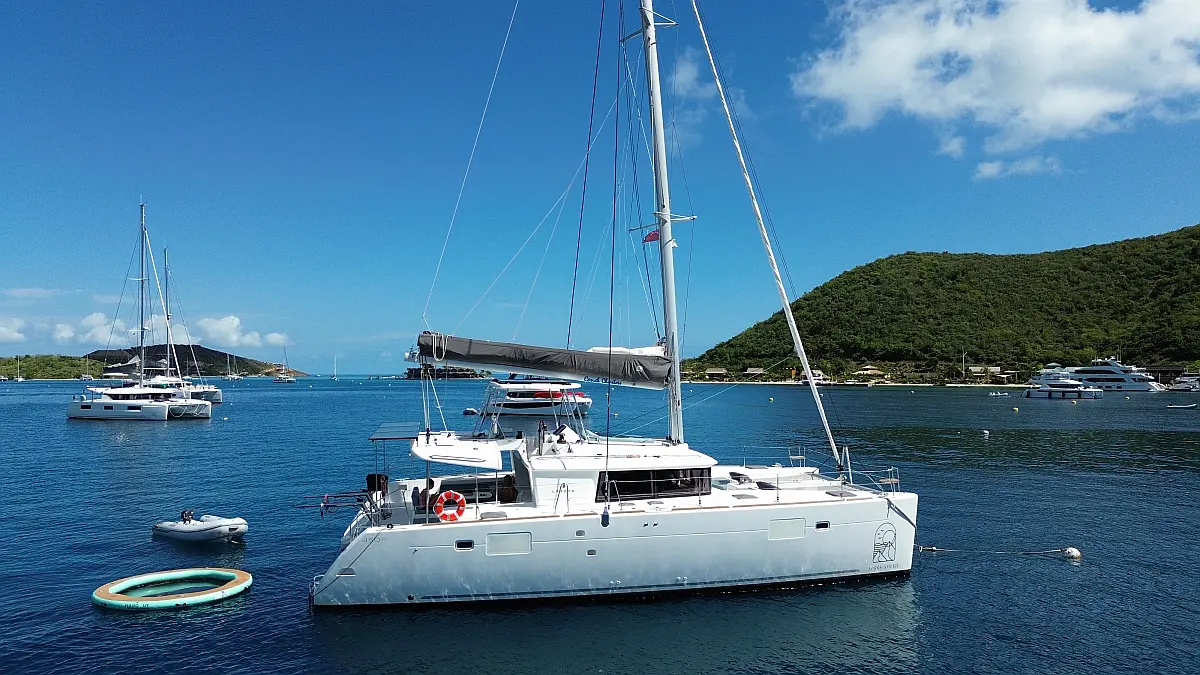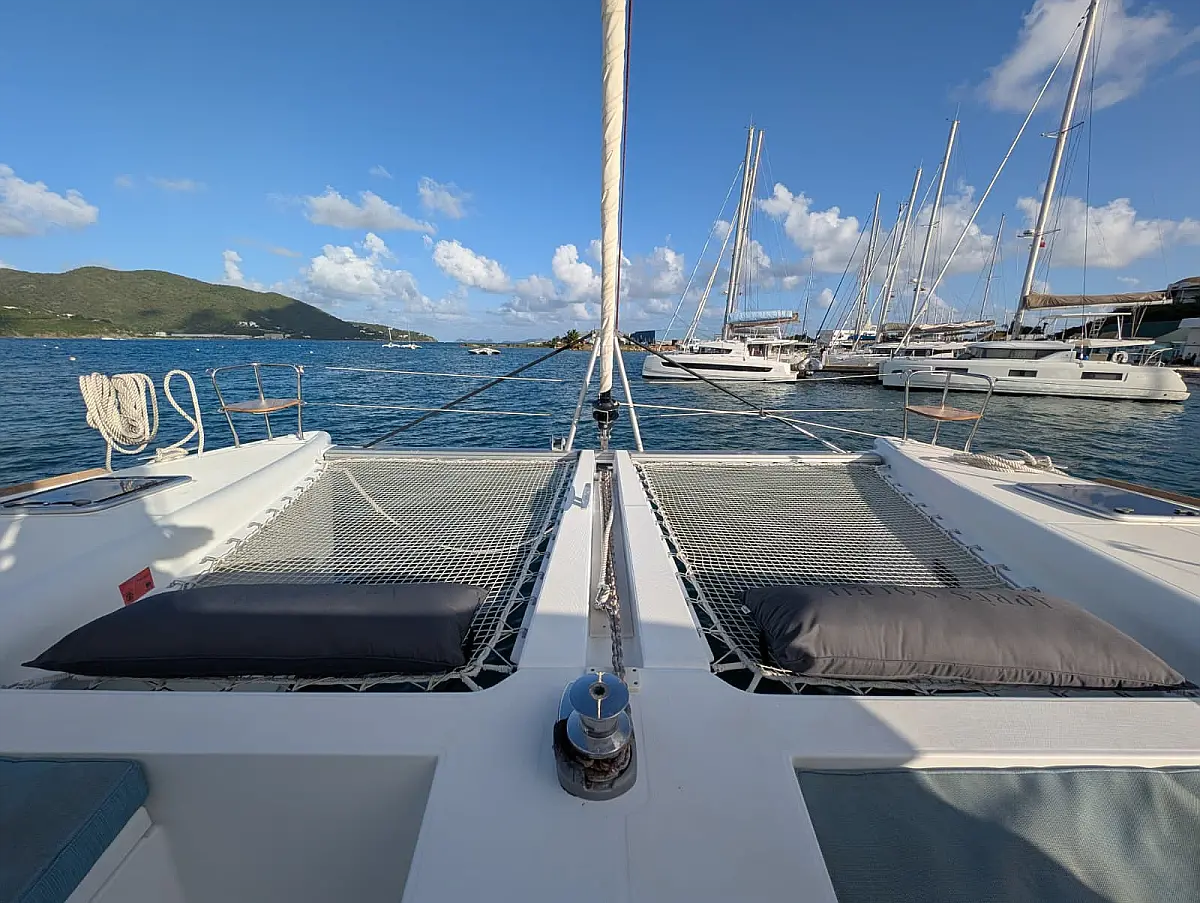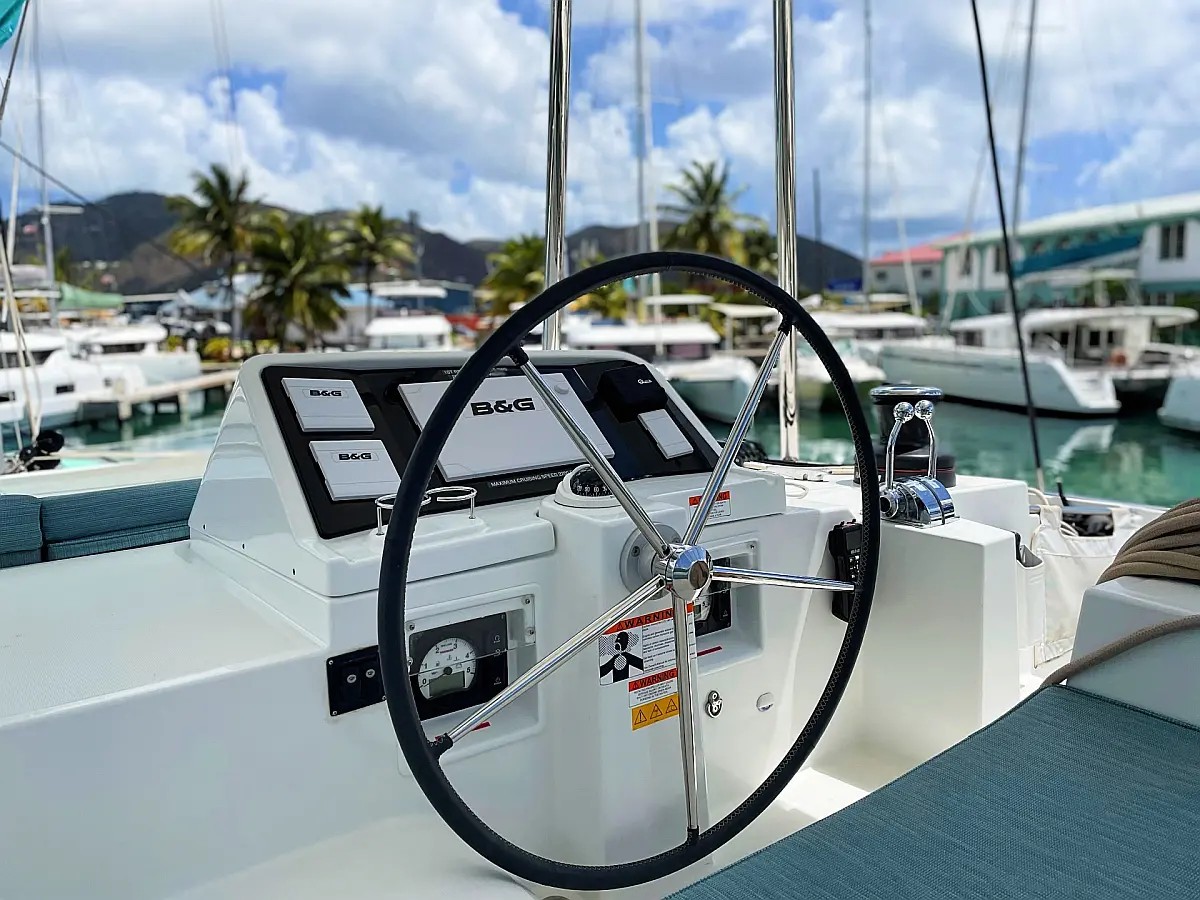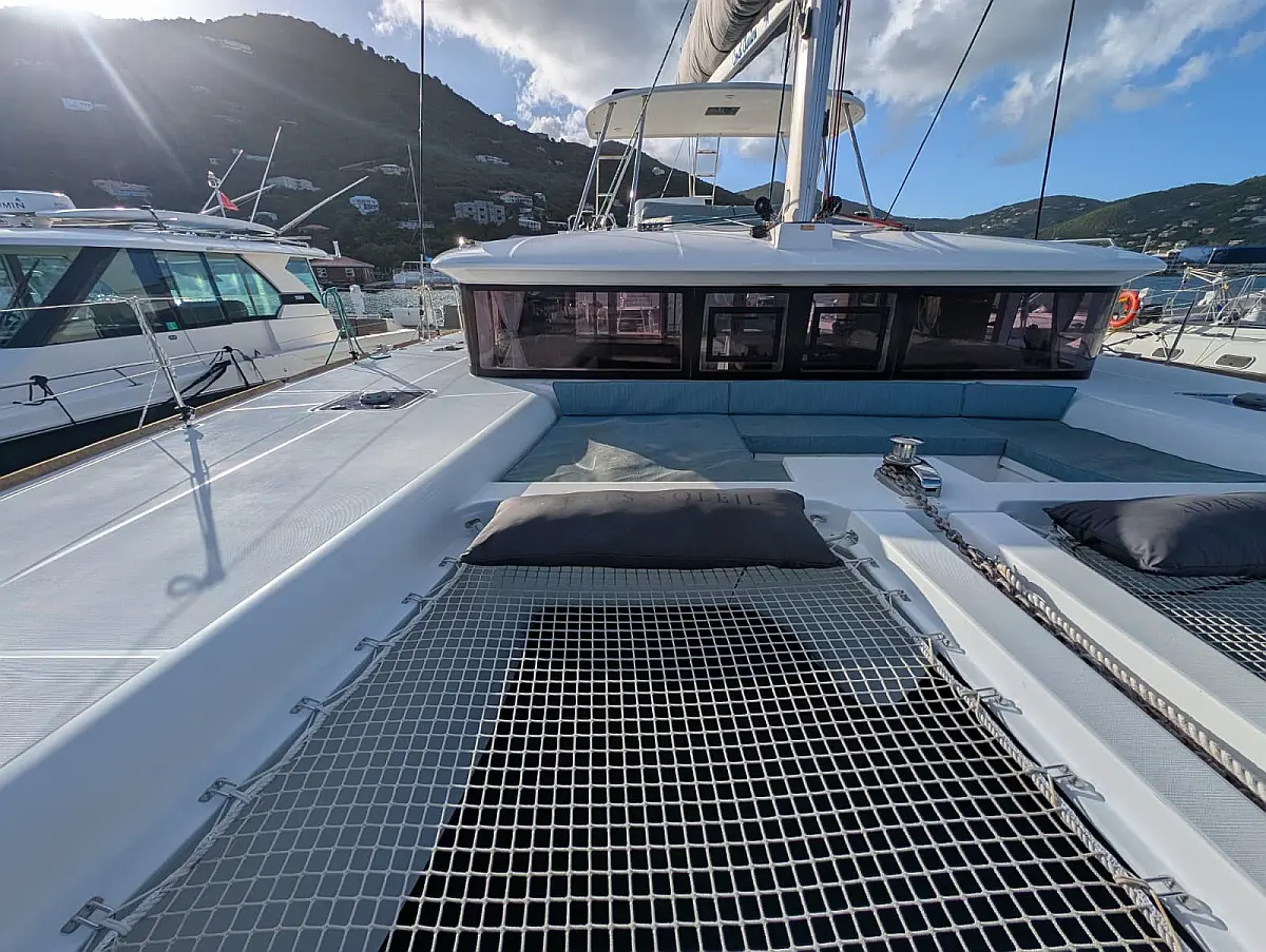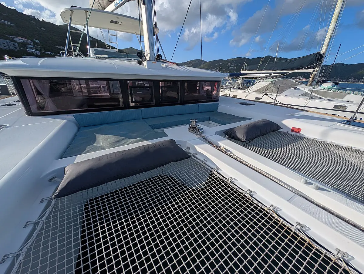 "Upstairs" there is the most popular spot of the yacht, the fly bridge, offering seating for the captain and the crew. A hard top bimini has been installed to provide ultimate comfort and sun protection. Forward are huge trampolines plus an inviting seating area which is great whilst under sail. This yacht is going to be a popular lady so book early for your idyllic BVI experience.