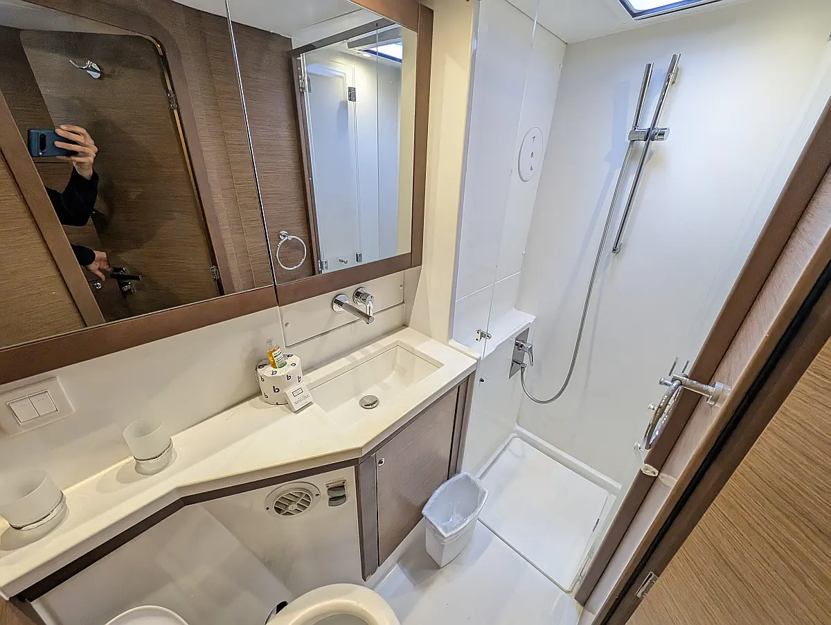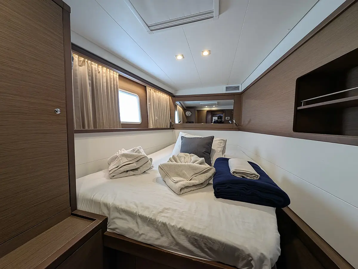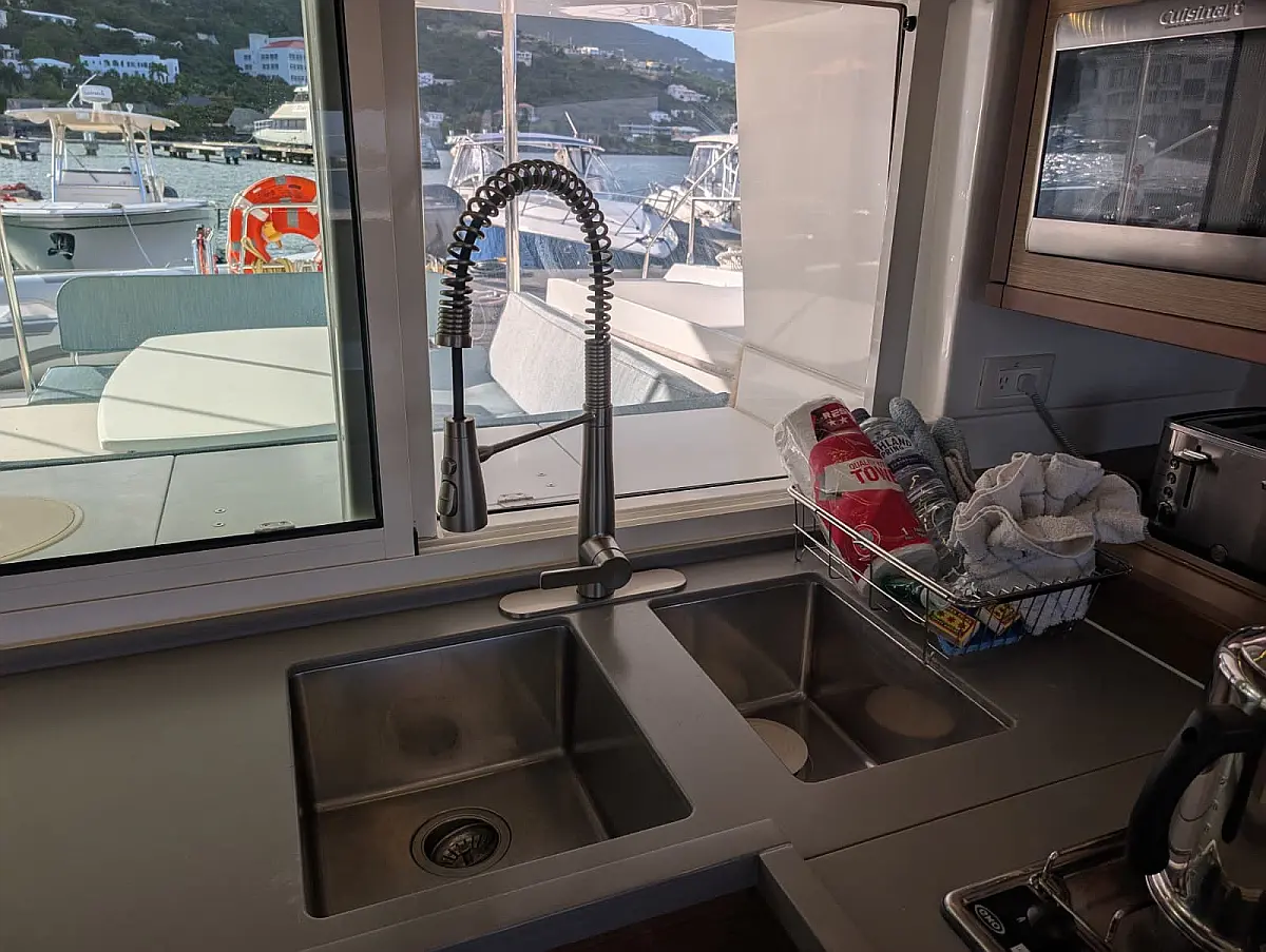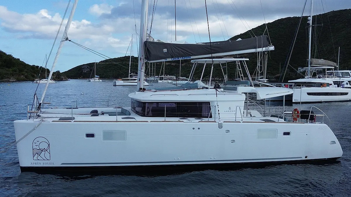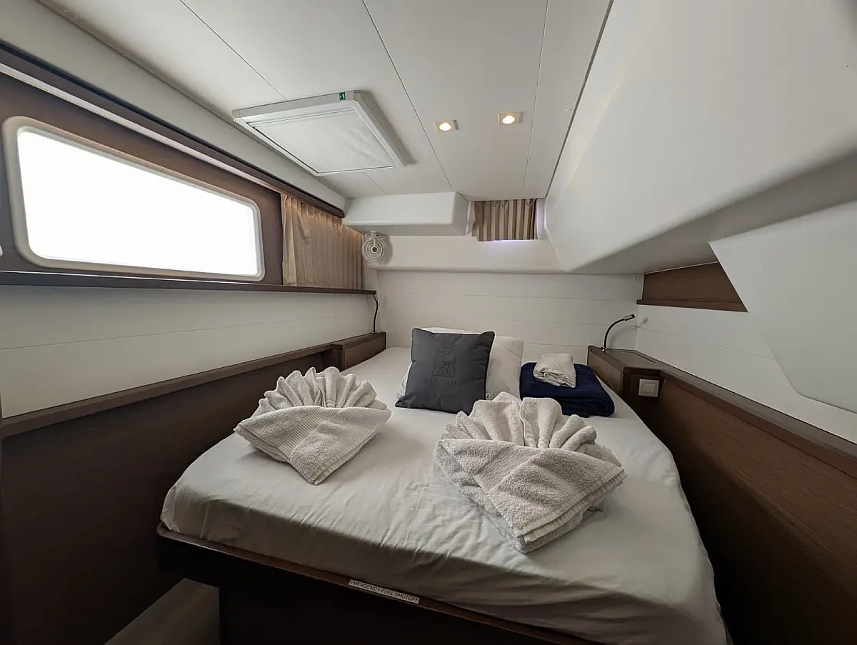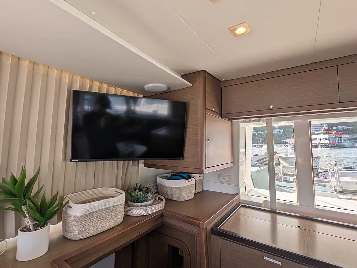 "Upstairs" there is the most popular spot of the yacht, the fly bridge, offering seating for the captain and the crew. A hard top bimini has been installed to provide ultimate comfort and sun protection. Forward are huge trampolines plus an inviting seating area which is great whilst under sail. This yacht is going to be a popular lady so book early for your idyllic BVI experience.